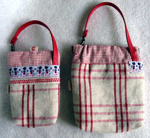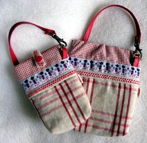 携帯ケースは赤いボタン(飾りボタン)の裏側にスナップボタンが付いていて