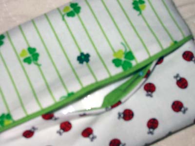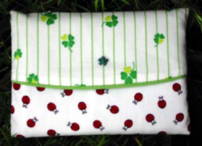 チビテントウムシと、クローバー柄を組み合わせ、小さな可愛いボタン(クローバーみたい)をつけました。