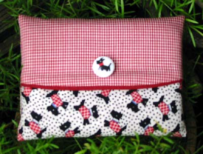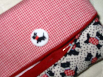 復刻柄で2000年ごろの生地で作っています。テリア柄と赤のギンガムチェックを合わせました。